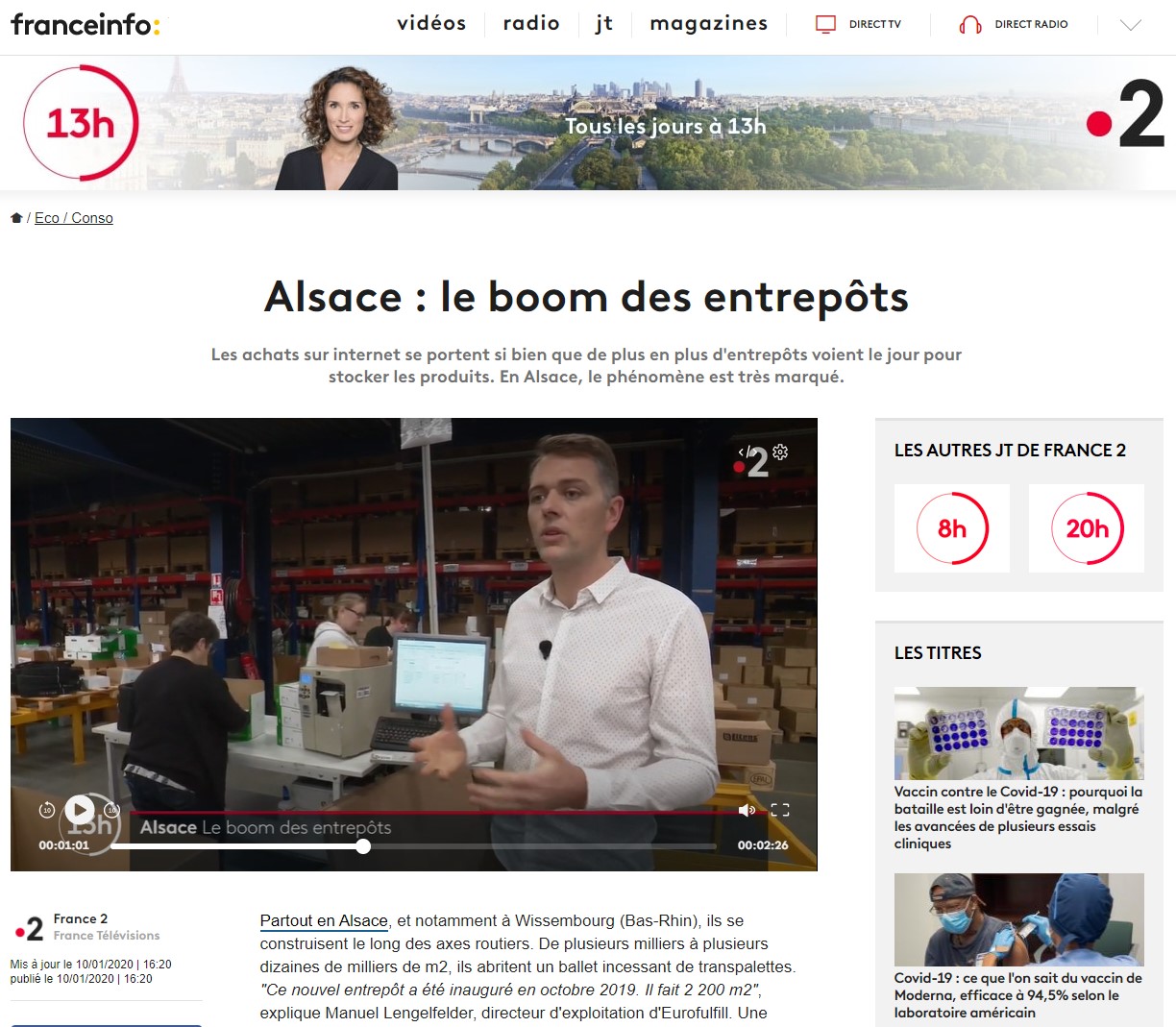Le 11 Novembre dernier, les antennes de France bleu Alsace ont consacré une émission à nos deux entreprises Eurofulfill, spécialisée en logistique industrielle et Euroservices Partner, spécialisée en logistique ecommerce, dans le cadre du programme La nouvelle Eco.